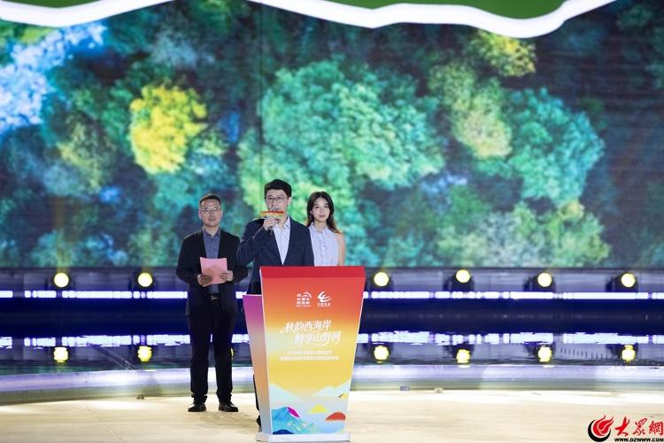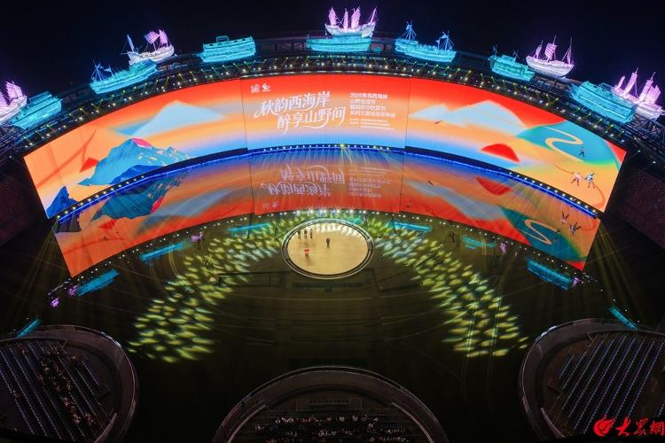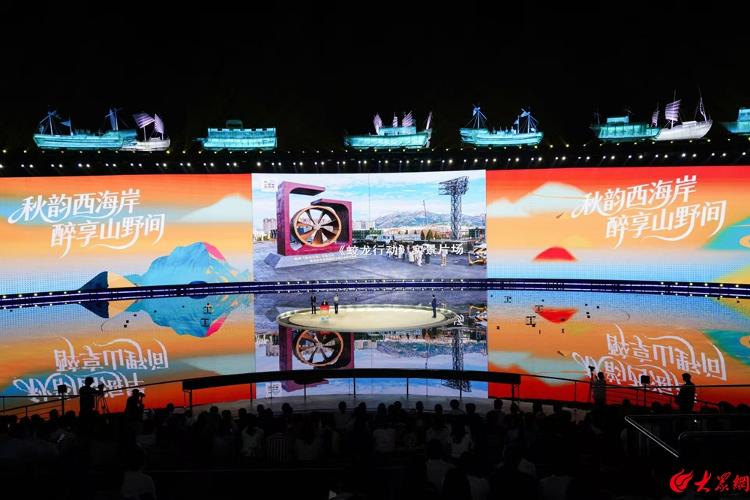 秋日的西海岸,海风拂面,山色渐染。当晚,凤凰岛艺术中心内,西海岸文旅主题宣传片循环播放,不远处的文旅市集人头攒动,西海岸特色文创产品、非遗手作、山野农产品琳琅满目。18时30分,活动在以海洋为背景、融合现代科技手段的《海上有青岛》开场舞中正式拉开帷幕。