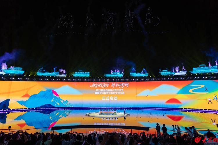 活动尾声,烟花与无人机表演交相辉映,在夜空中勾勒出西海岸的山海轮廓,西海岸秋季文旅的完整图景次第绽放。嘉宾移步观看《海上有青岛》,亲身体验这场360度全景秀演的震撼效果。